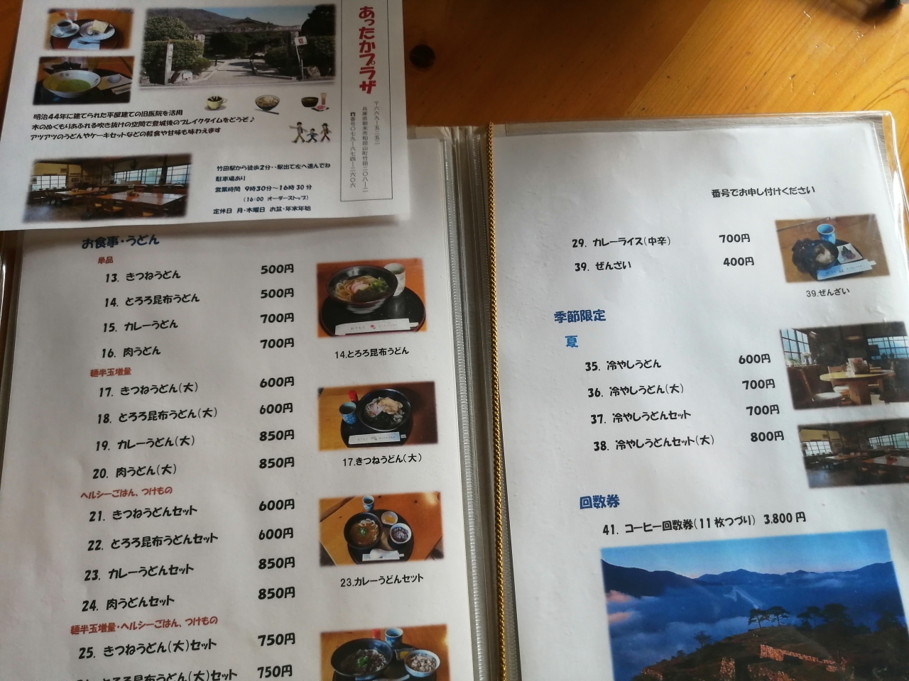 竹田駅前のわだやま観光案内所で、列車で来たひと向けキャンペーン中とのことで、竹田城入場引き換え券と扇子をいただきました。