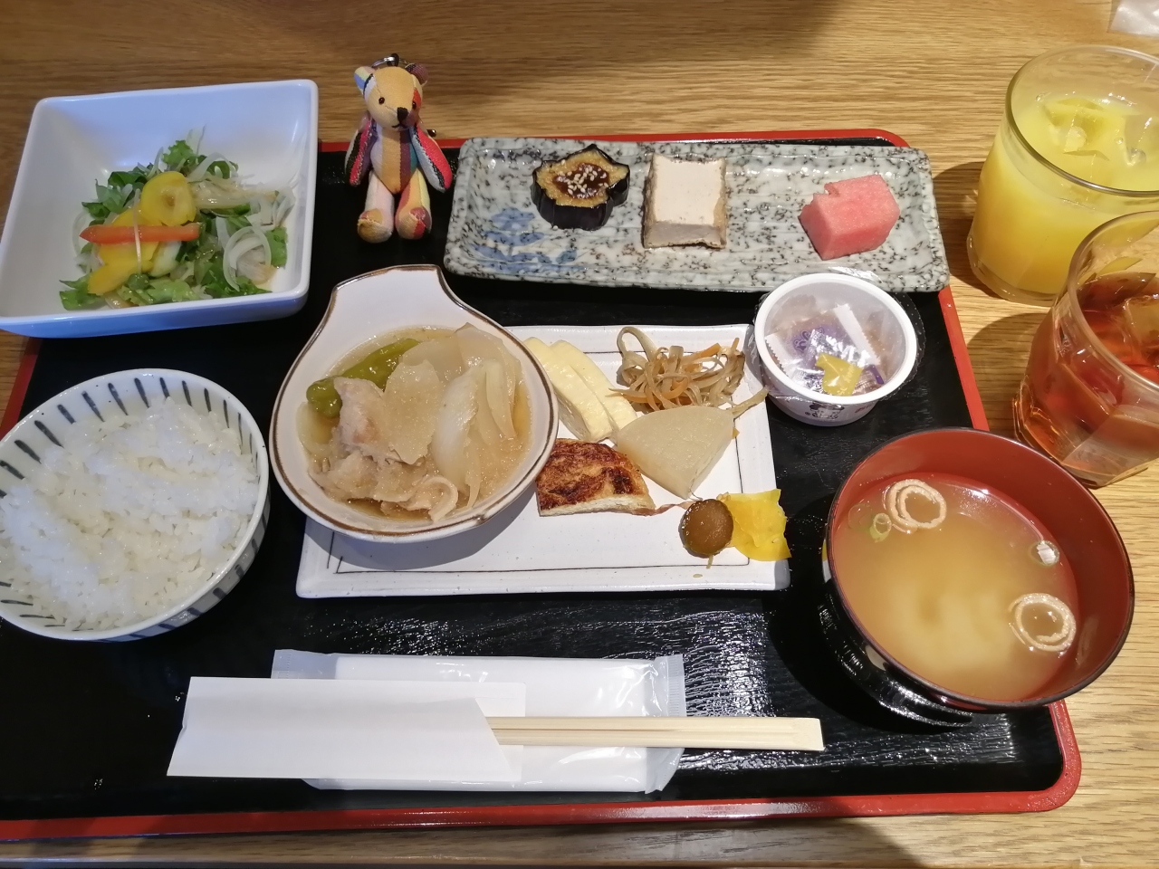 和朝食つきプランだったので、一階の居酒屋さんで朝食でした。おいしくて良かったですよ。