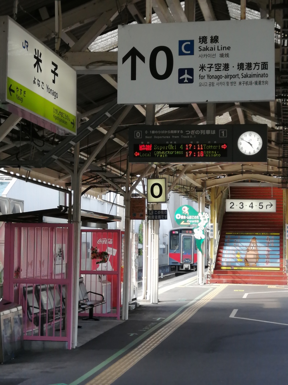 足立美術館最寄り駅の安来は2番線発で隣駅です。- 旅行時期