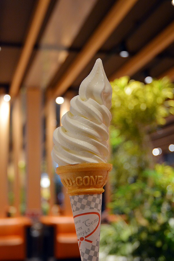 味の濃いラーメンの後に楽しむとさっぱりするのでオススメです。店舗内はかなりファンシーな作りなので、男性のみだと躊躇します。ソフトクリームは流石に美味しく濃厚です。アルバイト風の店員はどんよりしていて不快でした。