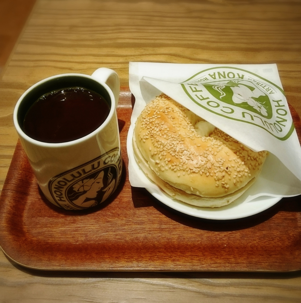 博多駅直結のKITTEにあり、朝7時から営業しています。有名コーヒーチェーンのモーニングは似たり寄ったりですが、こちらはベーグルサンドやデニッシュサンドなど種類も豊富で、しかもドリンクセットでどれでも500円!混んでないし、ハワイアンミュージックで心地よいし、おすすめです。