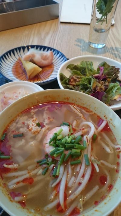 白を基調にしたとても明るい店内でした。窓際の席は博多駅ビュー。セットメニューがあるので夜でもお安いです。トムヤムクンはかなり酸味があって好みの味。パクチー好きな方は無料で追いパクチーができます。他のメニューも試してみたいです。