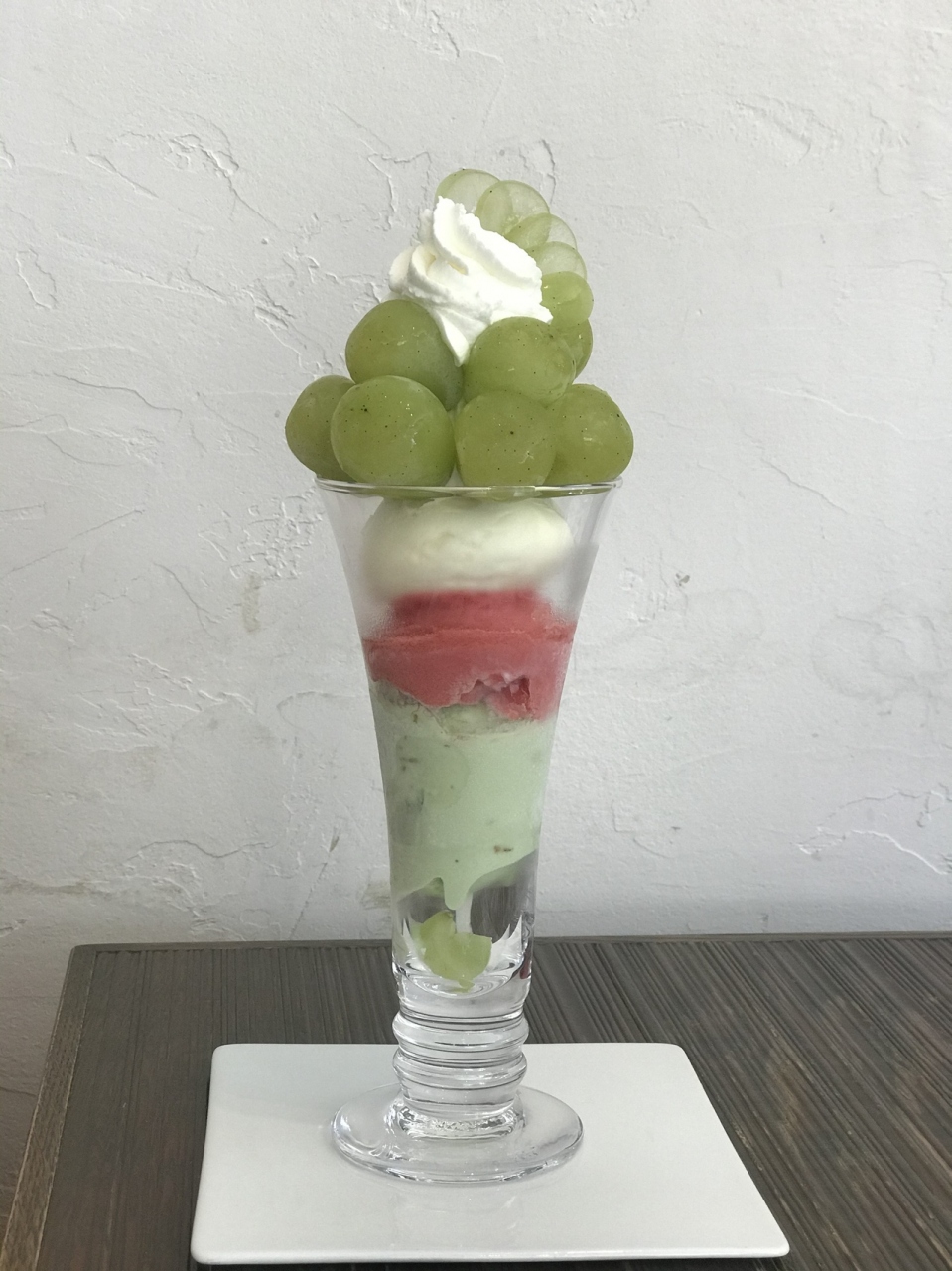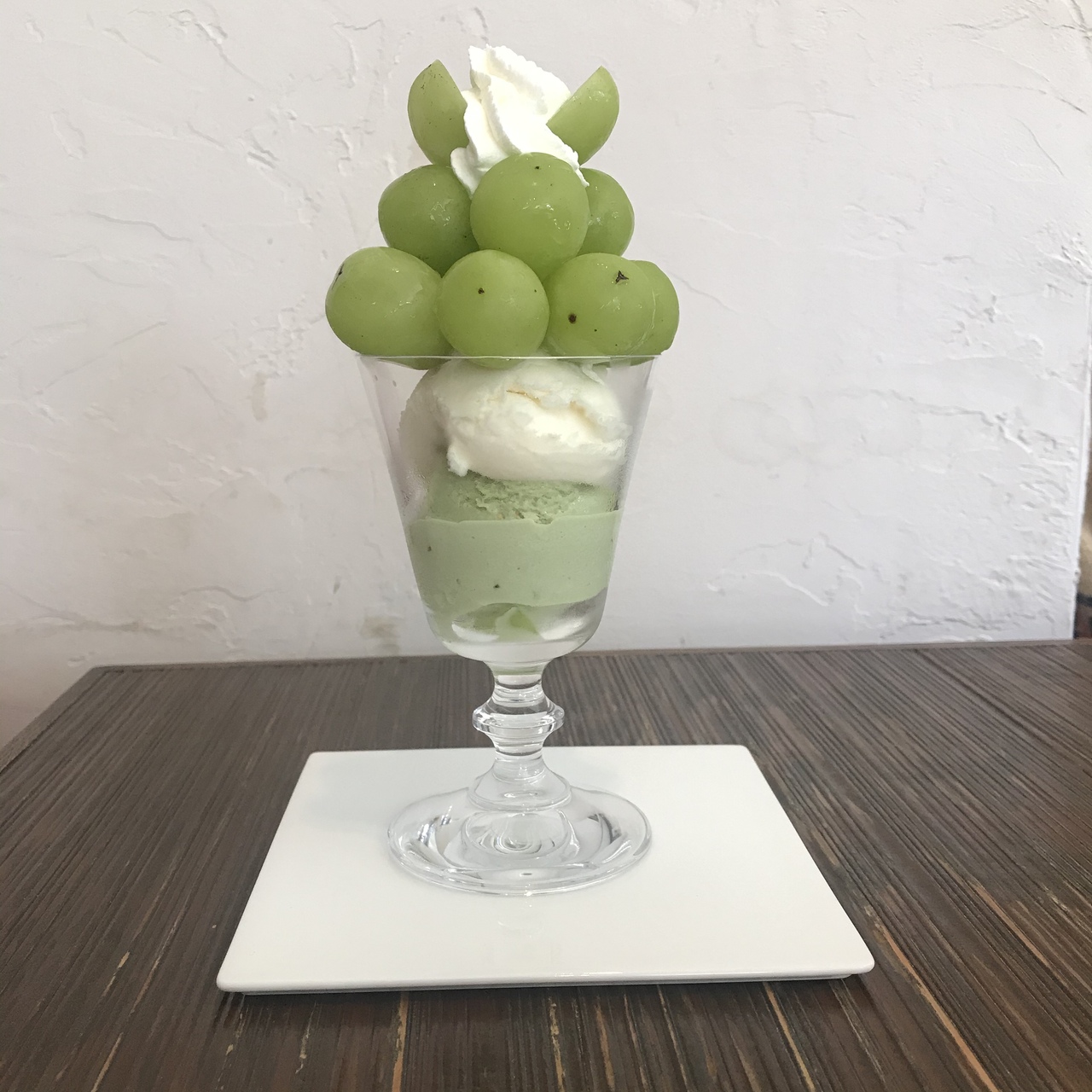 平日であれば混んでいません。かなり広いスペースでゆっくりできました。いろんなフルーツのパフェがありますが、ジェラートの種類がそれぞれで決まっています。結局シャインマスカットとマスカットジパングを注文。甘みはジパングの勝ちですが、食感はシャインマスカットがよかった。