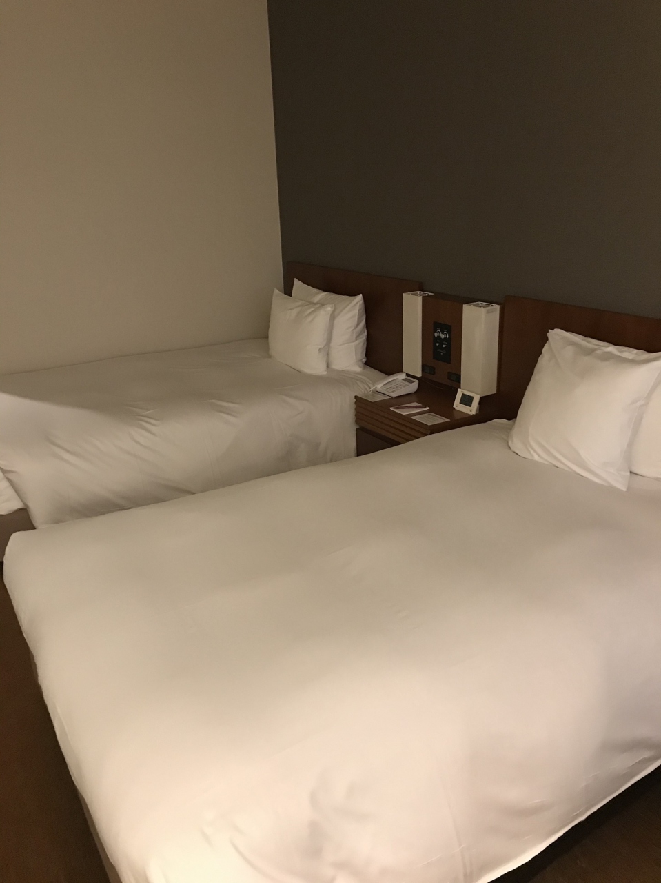 かなり古いタイプのホテルです。コンセントがデスクにしか無く、個別空調でもないので暑くて窓を開けました。女性専用アメニティや、ロビーのインスタントの飲み物サービスがあり、部屋にお水のペットボトルがありました。ハード面は古いですがサービスで頑張っているとおもいます。Wi-Fi環境もばっちりでした。