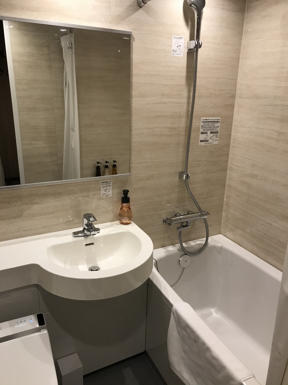 バス、電停の駅から近いです。一階にコンビニが併設されているので便利でした。部屋のバスルームは小さめですが、大浴場があるので狭いのが嫌な方でも良いと思います。フロントに化粧水などのアメニティが揃っているのでとても助かります。