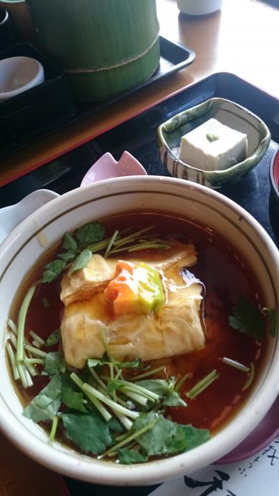 嵐山観光の際、ランチで利用しました。平日のオープン11時に行きましたので、お客さんはまだ私達だけ。ただし紅葉の時期は並ぶでしょう。ランチはお膳や丼ものなど、何種類かあります。単品のみの注文はできません。わたしは湯葉あんかけ丼のセット、旦那は汲み上げ湯葉膳。お膳についてくる田楽がもちもちでおいしかったです。