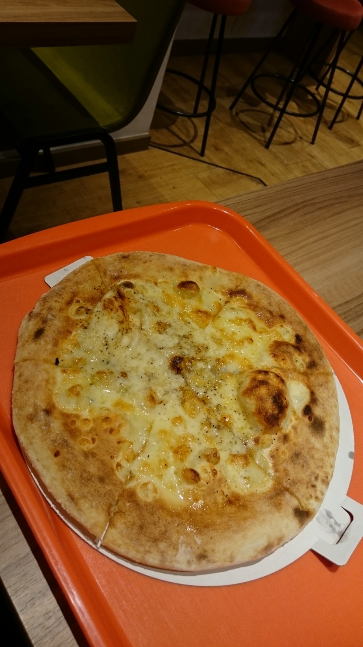 直径25センチあり、女性だとおなかいっぱい。クアトロフォルマッジョはメープルもついてきます。甘しょっぱくておいしかった。ランチセットはかなりお得なようです。若い子で店内はすぐに席がうまっちゃいます。