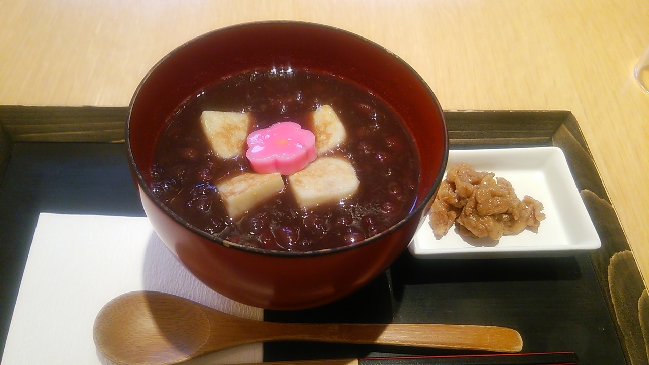 百番街にありますので、観光の締めに行ってみました。平日の昼下がりなのにほぼ満席。パフェかぜんざいか迷いましたが寒かったのでぜんざいにしました。小豆は甘いです。生麩はお餅みたい!全体的にもう少し安ければもっと嬉しいかな。