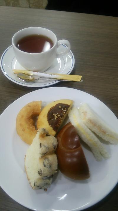 名古屋駅地下街は複雑で結構迷いました。ドリンクにパンのバイキング付で490円!!安!種類はあまりないし、焼きたてでもないし、甘いパンばっかりだけど、とりあえず名古屋モーニングのお得な気分は味わえます。一応分煙です。