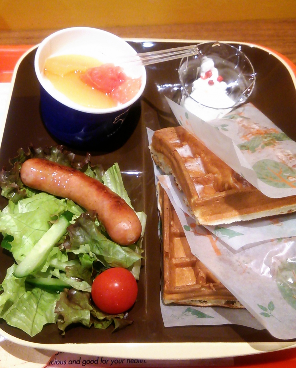 - ヨーグルトは普通。ワッフルは初めてのタイプ。