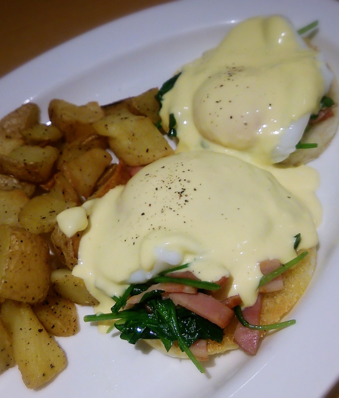 エッグベネディクトの卵は結構な生です。もう少し日が通ってる方が好みかな。