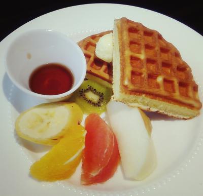 フルーツワッフルはコーヒーか紅茶が付いて520円。分厚いワッフルはかなりお腹いっぱいになります。