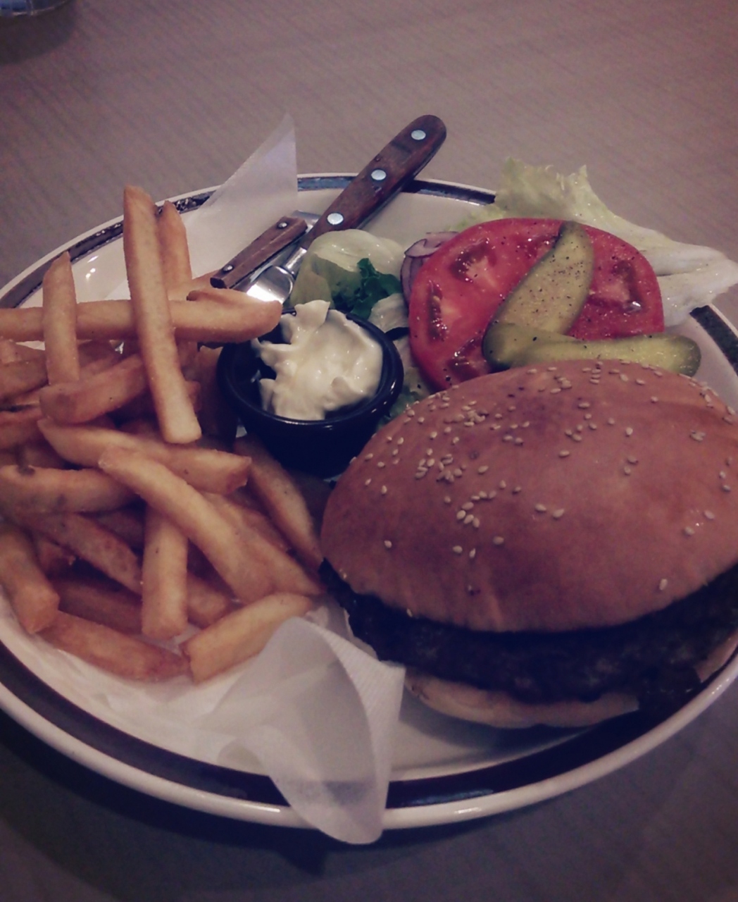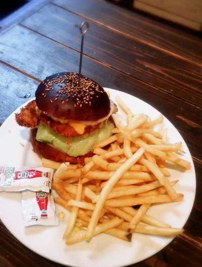 ランチはハンバーガー1000円、日替わりパスタ880円等。せっかくだからハンバーガーにしましたが、直径13か15センチはあろうかというばかでかいハンバーガーが出てきました。中身は自分で挟むシステム。量が多すぎてかなり残しました。味は、可もなく不可もなく、と言った感じかな。