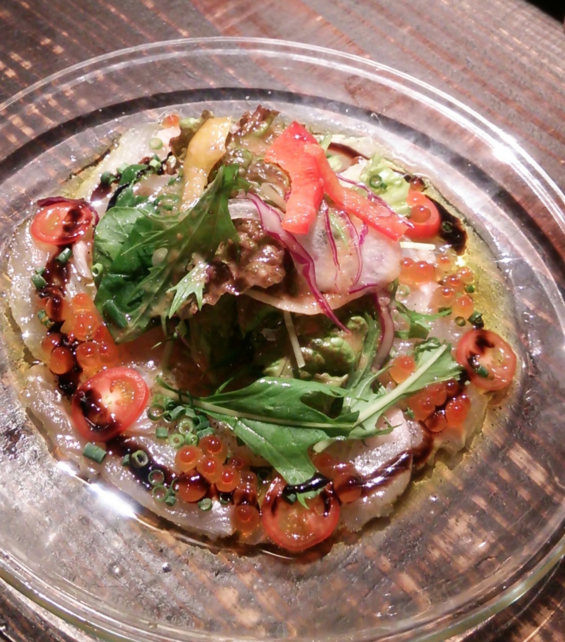 ちょっと奥まった場所なのにほぼ満席。週末は予約が無難です。焼き鳥屋なのにまったく煙たくない、おしゃれな作り。串は平均1本300円くらいで高め。でも大ぶりで、なんでもおいしいです。カルパッチョも綺麗に盛り付けされていました。イチオシのつくねは、かなり美味しかったのでぜひ食べてみてください!