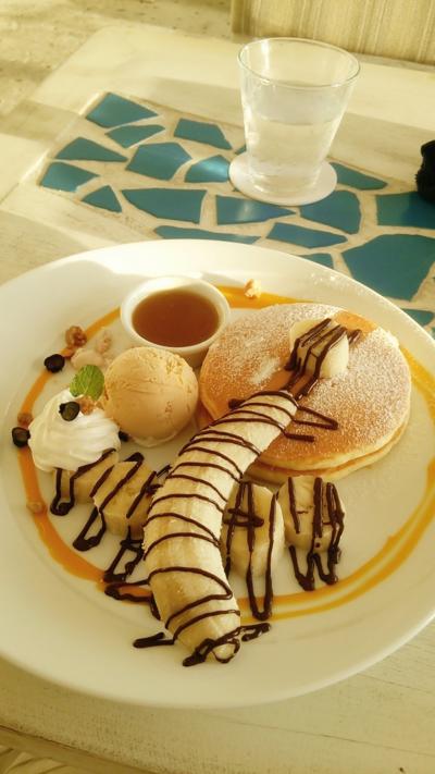 アメリカンビレッジだけに、基本的にはアメリカンな雰囲気のショップや飲食店が多いです。外国人客が多かった。でも浜の方へ行くと、ハノンというパンケーキのかわいいお店がありました!ここはアメリカというよりギリシャっぽい。(行ったことないけど)