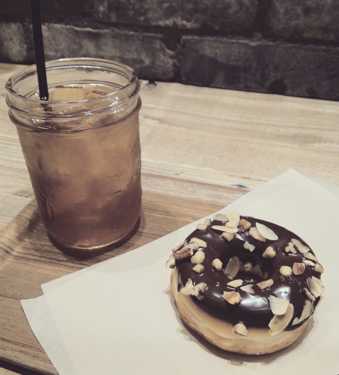 私はロイヤルといえば!のトロピカルアイスティーとチョコアーモンドドーナツ。