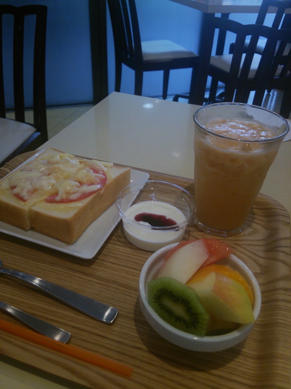 今回は610円のTOKIOランチにしました。小さなヨーグルトもついてきました。チーズトーストのハムの下にはマヨネーズが塗ってあって美味しかったです。もう少し焼いてもいーかな?