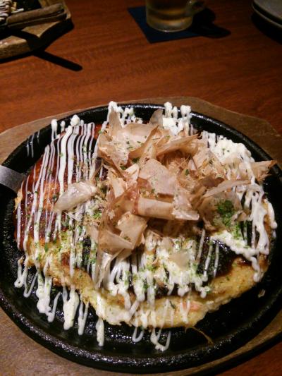 広島風お好み焼きで、そばかうどんを選べます。うどんは珍しくて美味しいです。マヨネーズだけではなく、コチュジャン風味の辛いタレと、明太マヨネーズもあって変化をつけながら食べる事ができます。ただちょっと高めかなー。うどんの方がボリュームがありますよ。
