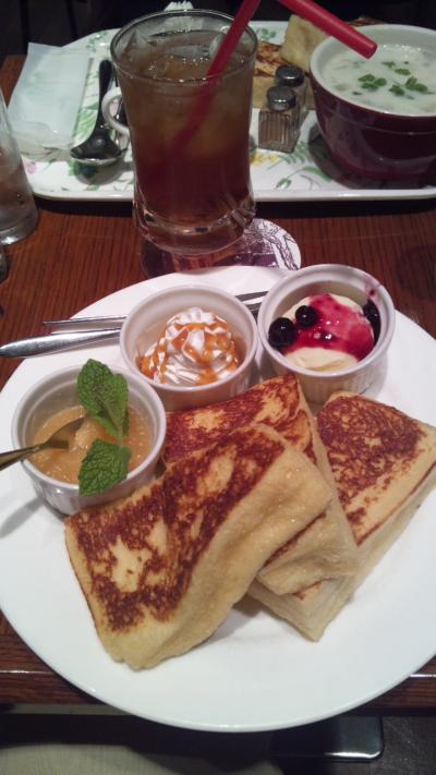 メニューはほぼフレンチトースト。もう2度と来れないかもしれないのでミックスフレンチトースト(850円)にしました。ぶ厚いフレンチトースト3枚に3種のソースがついです。どれも美味しかった。こんなにふんふわのフレンチトーストは食べたことないです。- 旅行時期