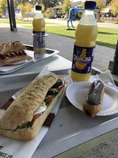 スーパー内にあります。英語は通じるようです。単品よりドリンクとデザートが付くセットの方がお得ですが、デザートは甘すぎて結局たべれなかった。サンドウィッチは美味しかったです。