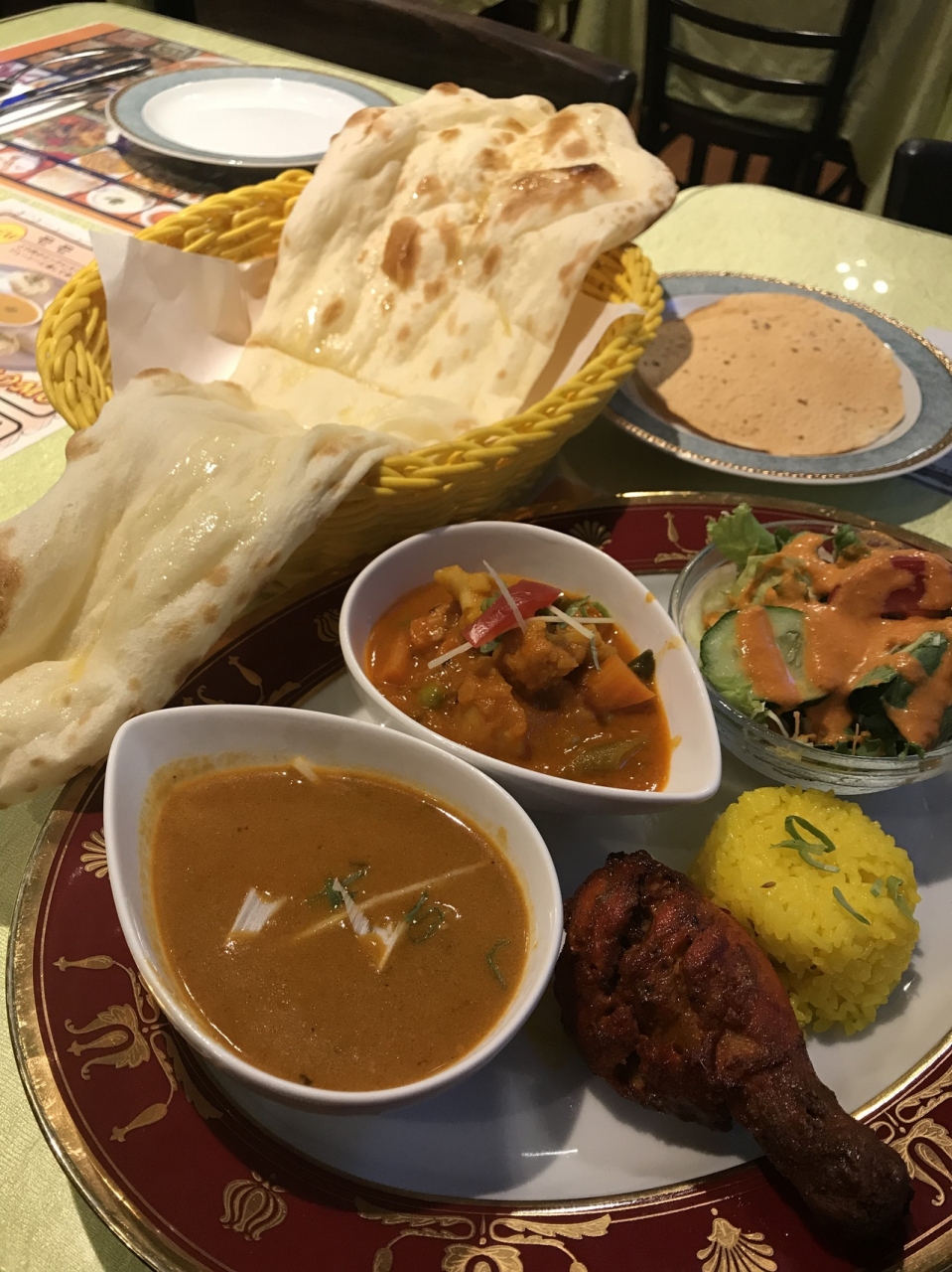 川崎駅から徒歩5分ほどです。広いお店で、テーブルも綺麗にセッティングされていて、ちょっと気の利きたインド料理やさんです。夜ご飯だったのでお安いセットにしました。カレー、サラッとしたタイプで味は塩気が強かった気がします。ちょっとわたしの好みではなかったかな?でも何の焼き具合はとても好きでした。