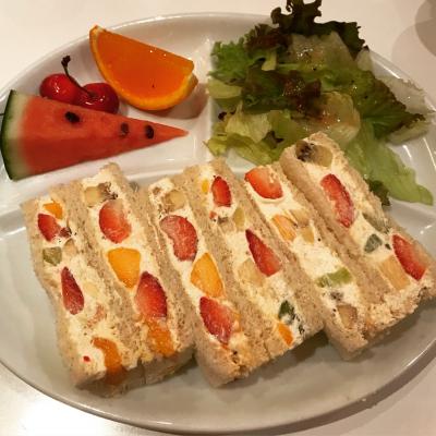 • フルーツサンドとグリーンティー