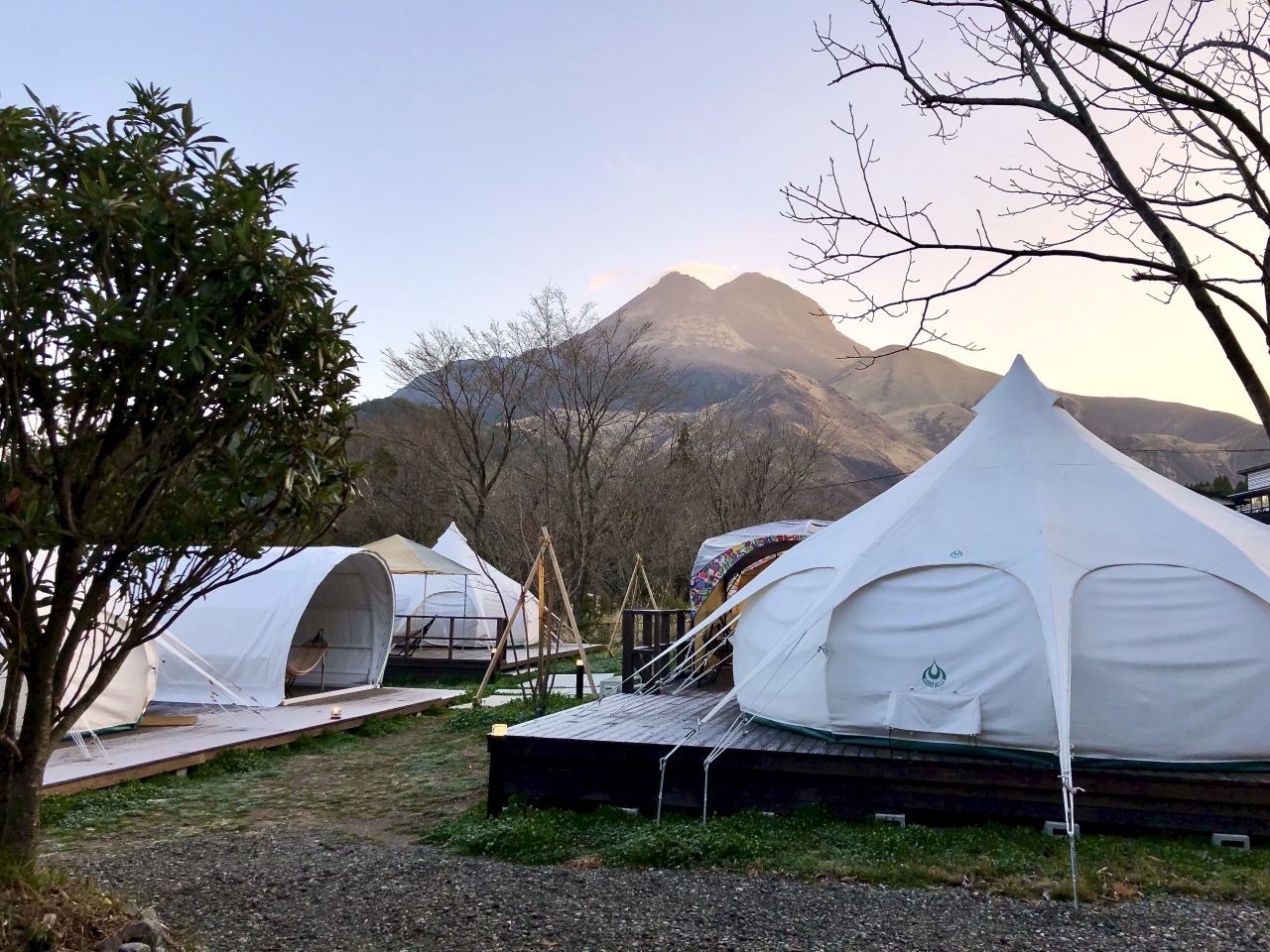 温泉が楽しめる由布院のグランピング施設です。