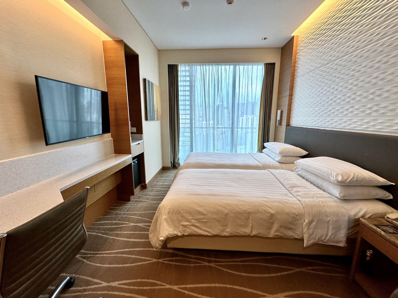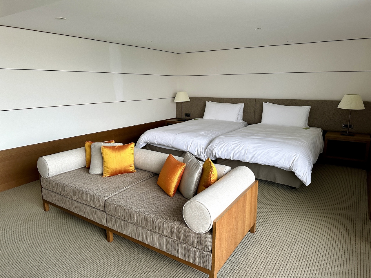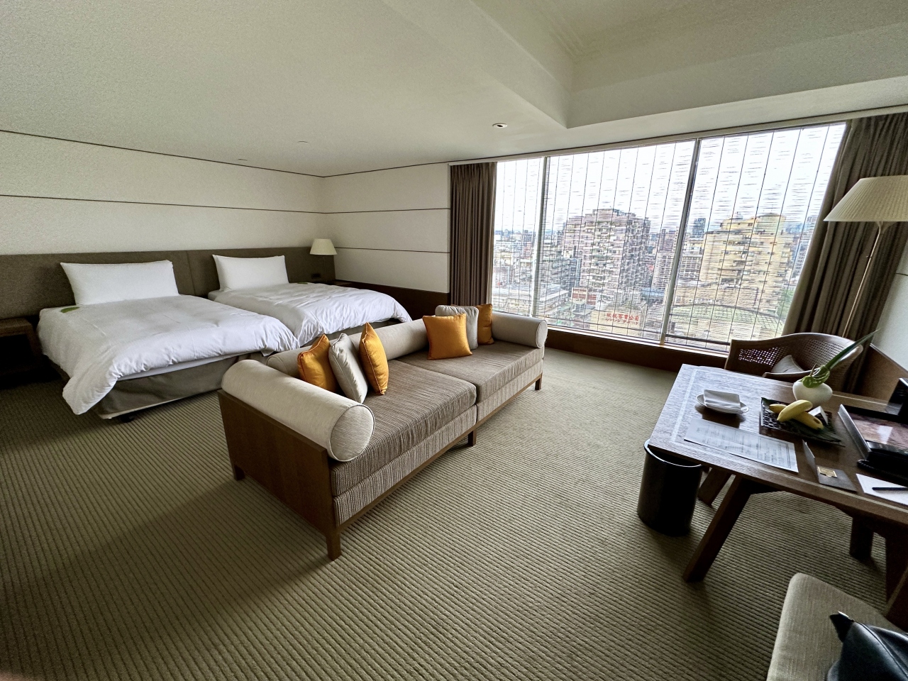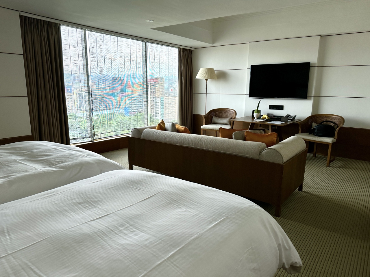 部屋はデラックスツインルーム。デラックスと言ってもこのホテルのスタンダードルームです。約50sqmほどの広さがあり、ゆったりと過ごせます。