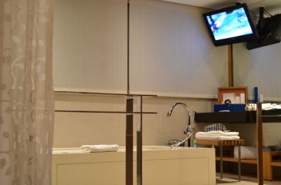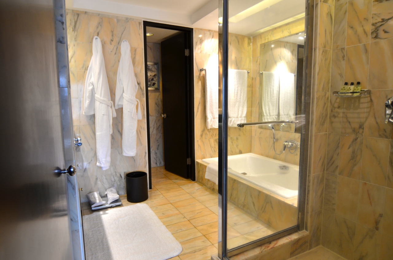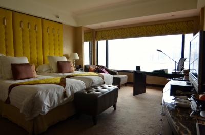 しかし、室内は重厚感があり、天井が高く、落ち着いた空間という感じでリラックスできました。ルームコントロールやホテルインフォメーションの確認など、室内に設置されたタブレットで操作します。とても洗練されたシステムだと思いました。