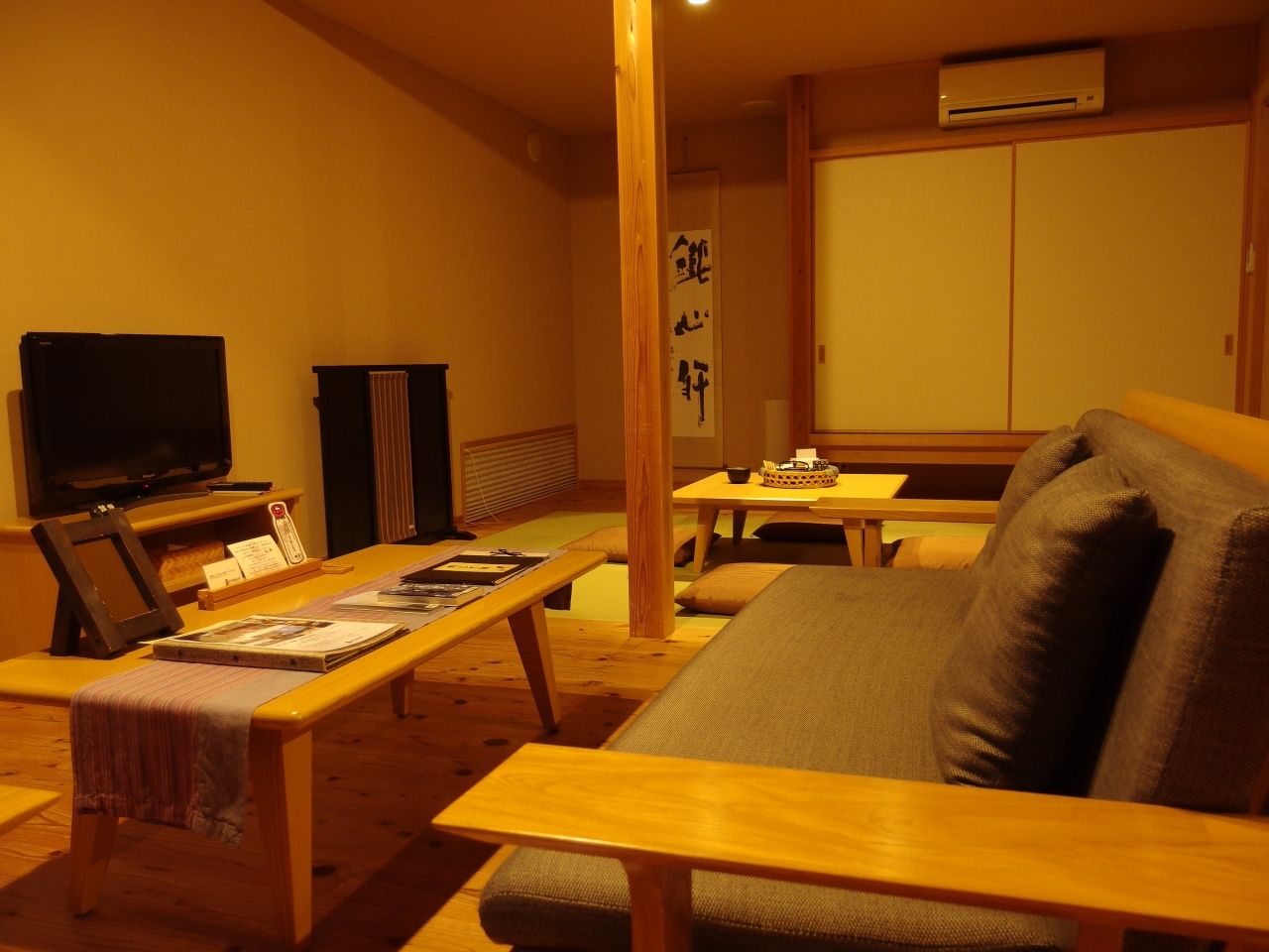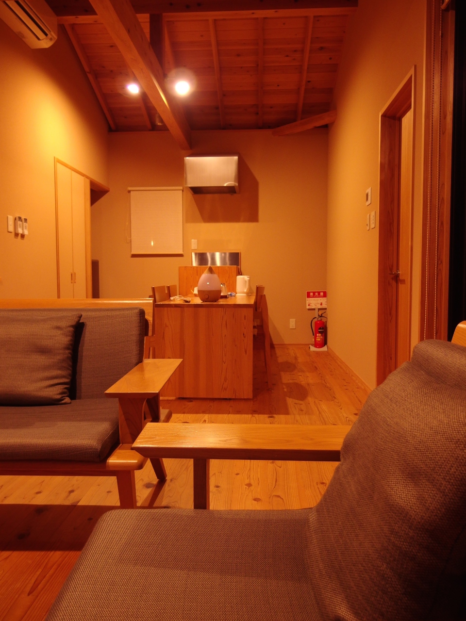 予約時には、このお部屋しか空いていなかったというのもありますが、海側のお部屋よりも広く、また、お部屋のデザインも古民家の風情を感じる素敵なお部屋でした。