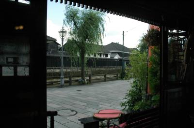 店の入口越しに蔵が立ち並んだ情景が見られ、川舟がときどき目の前を通ります。