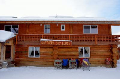 タイガの中に立つ静かな環境のB&Bです。オーロラ観測にうってつけという触れ込みですが、北側の森が近く、地平線近くの低いオーロラの場合は木が邪魔になってしまいます。