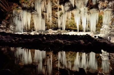 - 河原に下る道は急勾配なので積雪時は要注意。車椅子は不可だが、駐車場からも氷柱をみることはできる