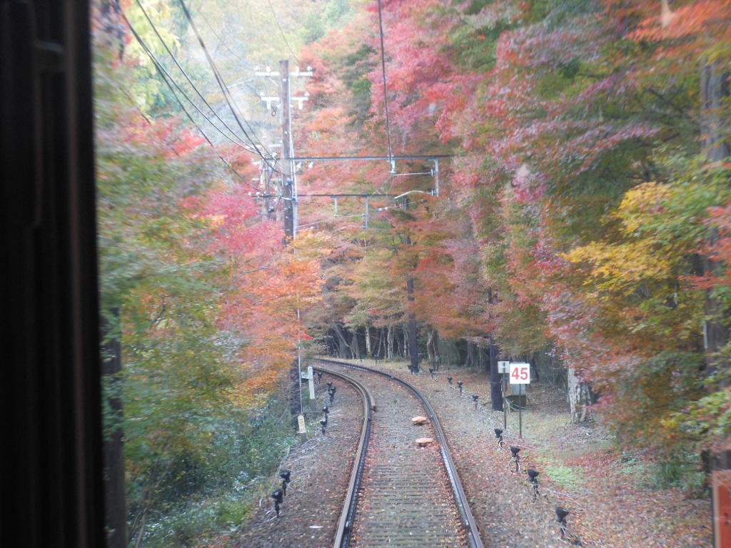 叡山鉄道、沿線のもみじのトンネルが良いです
