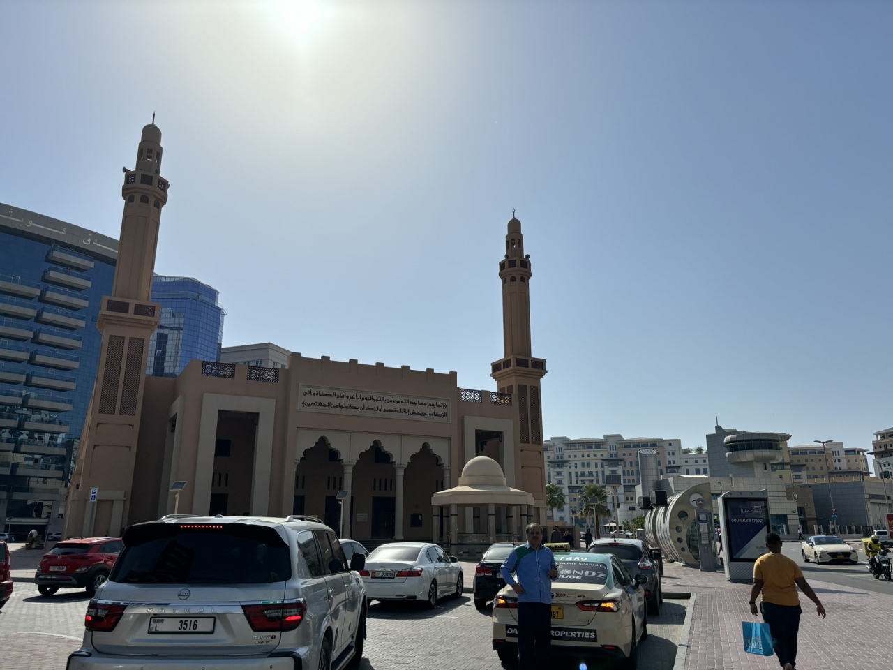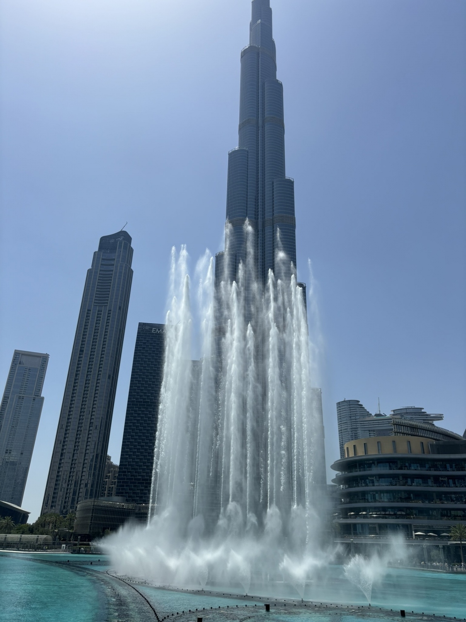 夜の噴水ショーを楽しむ人がきっと多いはずですが、時間の都合で日中一度きりの回を見ました。とにかく暑いせいか、思いのほか見物する人の数は少なく、好きな場所に陣取れました。恐らく世界一ののっぽビルを背にする画角が良さそうです。150メートルの高さまで噴き上げる豪快な噴水には、日本の浄水技術が使われていると聞きました。束の間の涼やかな時間です。