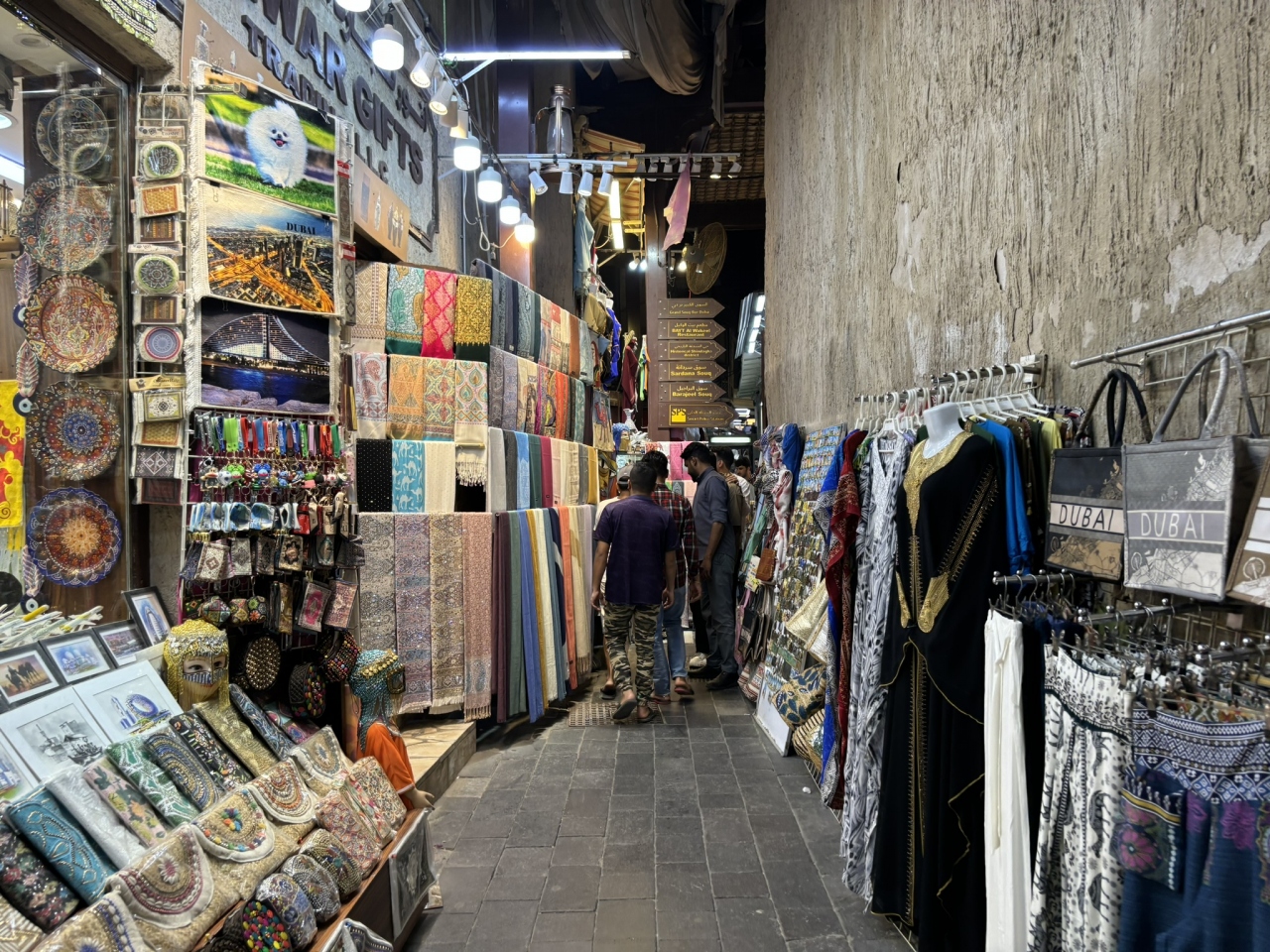強引な客引きで悪名高いオールドスークでしたが、自分が訪ねた時はいずれも夕方で全般に客足自体が少な目で特に誰からも邪魔されずに散策できました。オールドスーク、またの名をテキスタイルスーク。カラフルな生地だけでなく日用雑貨に土産物までびっしり軒を連ねます。アラブらしく乳香の豊かな香りも漂ってきて寄り道したくなりましたが、目的地はその先のアブラ乗り場だったので買い物せずに気分だけ。