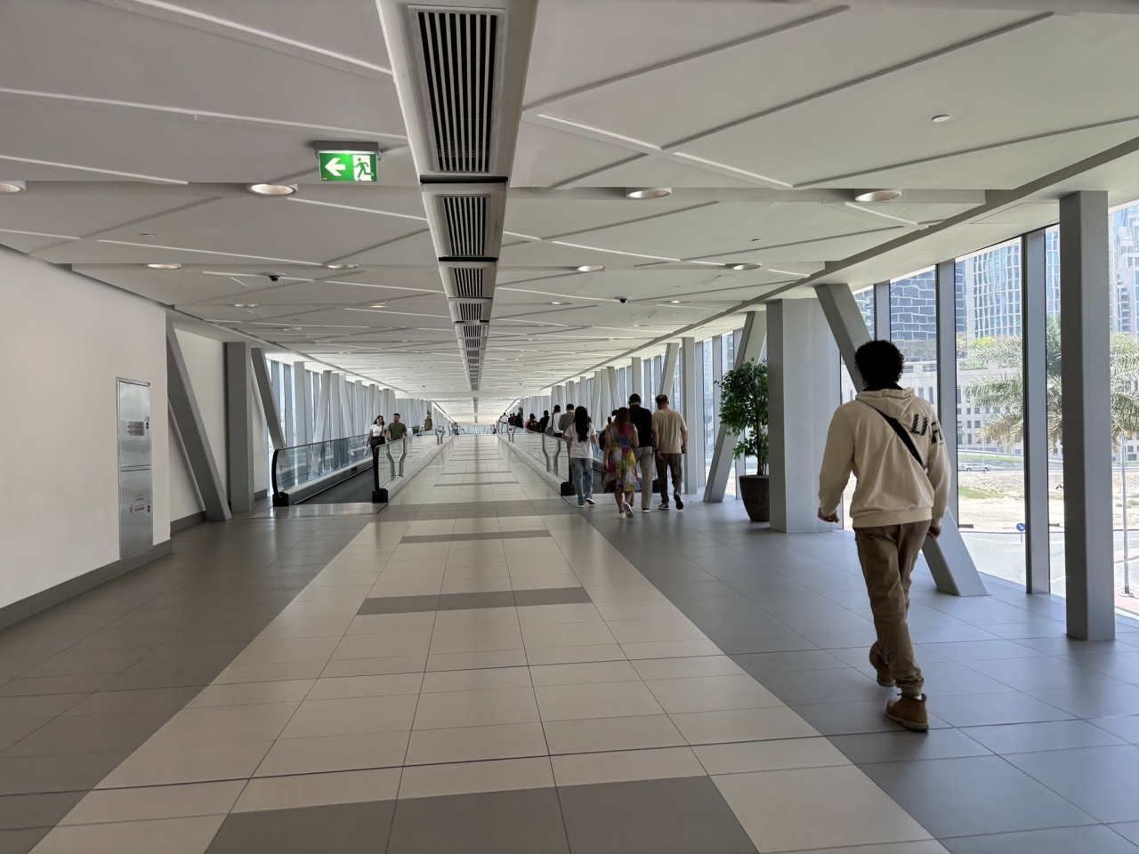 ドバイモールの最寄りでもあるメトロの駅ですが、ここからお目当てのショッピングモールまでは結構な距離です。日除けの屋根はある空間ですが、緩めの冷房でひたすら動く歩道を乗り継ぎまくります。クルマ文化のドバイゆえ仕方がないことではありますが。