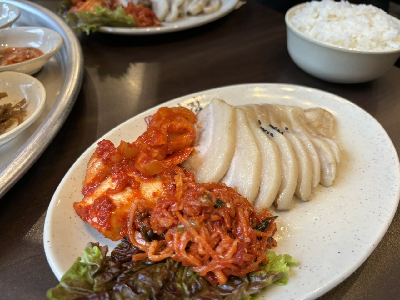 明洞で買い物を終えると、これまでは一つ覚えで毎度毎度「サムギョプサル食おうぜ」に、地元の友人が付き合ってくれていましたが、「たまには焼かずに茹でようぜ」とポッサム専門店に連れて行かれました。二日酔いにも優しい味です。担当してくれた若い店員さんも覚えたての日本語を交えながら一生懸命接客してくれて嬉しかったです。