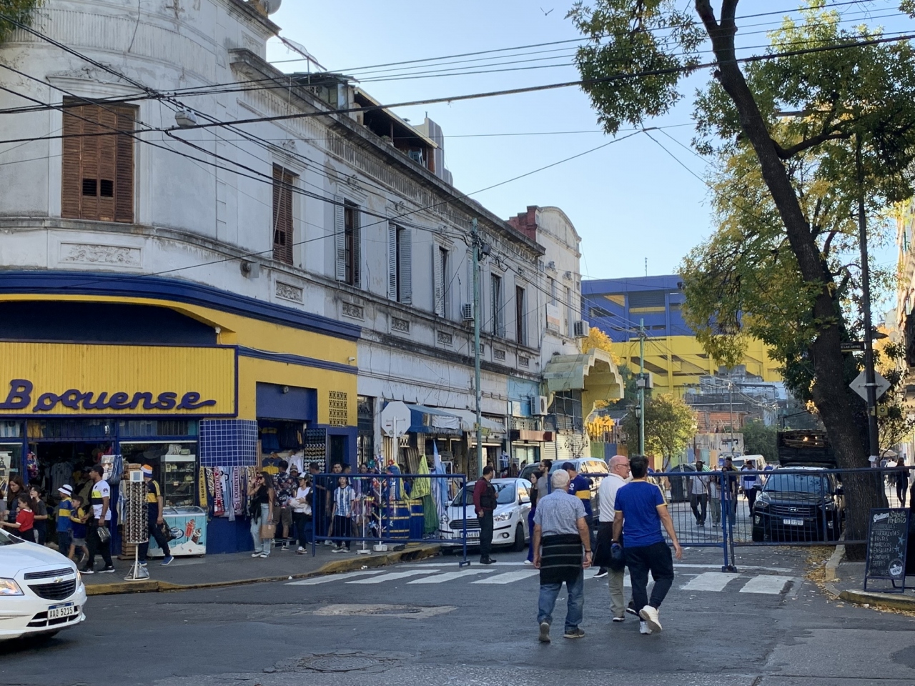 ボカ地区を訪ねてお目当てのカミニートの人込みをかき分けながら散策していたら、さらにそこへ大勢の人出がなだれ込んで来て、何事かと思ったら、ちょうど近くのボカジュニアのスタジアムから人が出て来る時間帯でした。大人に混じって、サッカーボールを抱えたキッズもたくさん。原色の街は、スタジアムを囲んだサッカーの街でもあります。