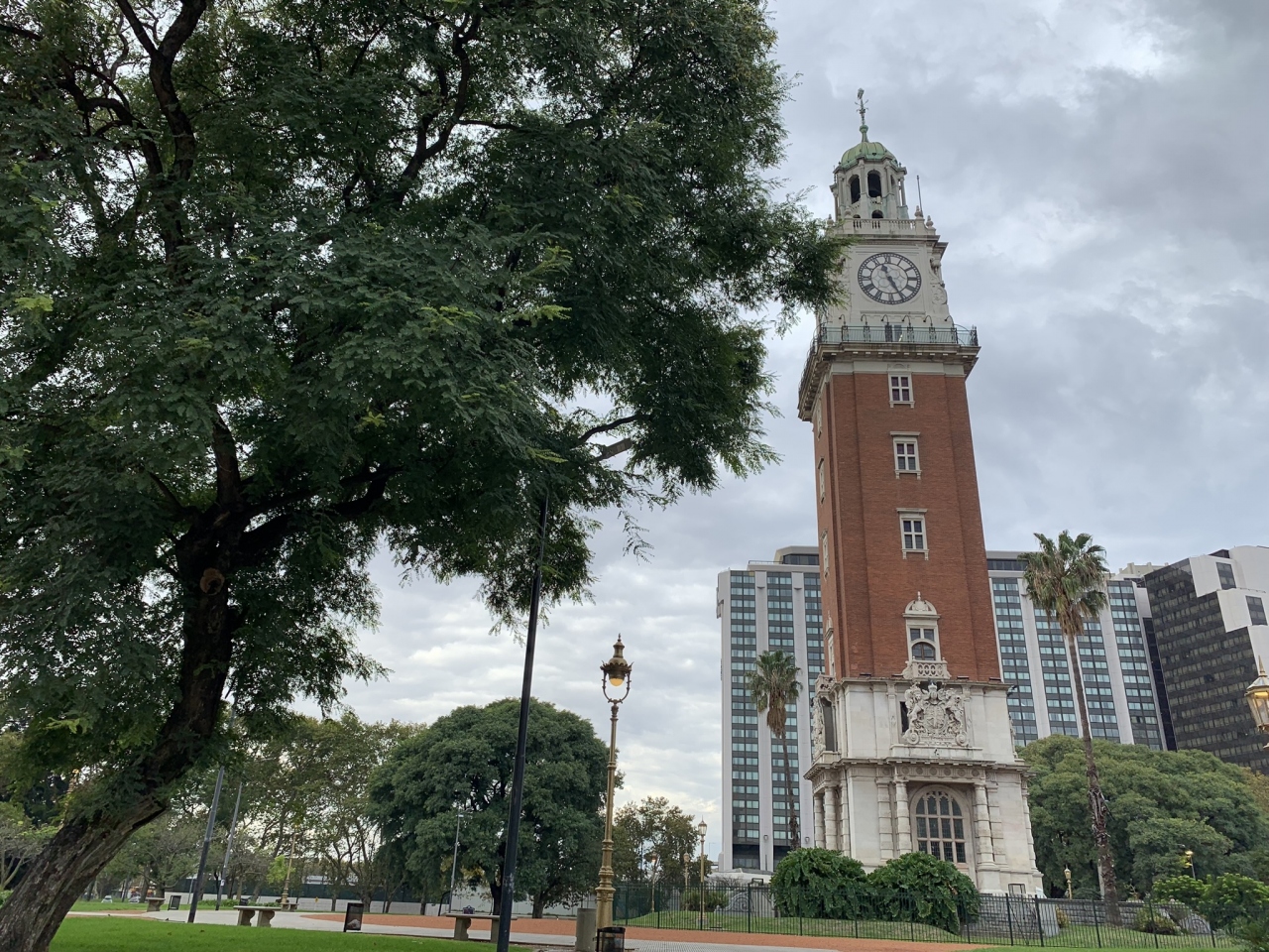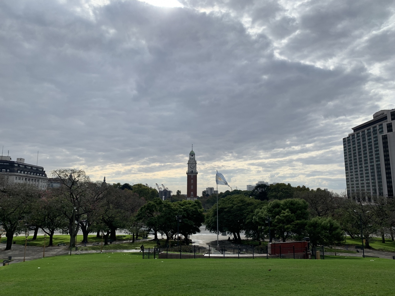 サン・ニコラス地区の宿から徒歩圏、レティーロ地区のサンマルティン広場から朝の散策を始めたところ、期せずして公園を抜けた先、大通りの向こう側にアルゼンチン空軍広場が連なっていました。広場の中央にそびえる英国塔が目印です。週末の街は寝坊気味なのか人出も少なく、のんびり歩けました。