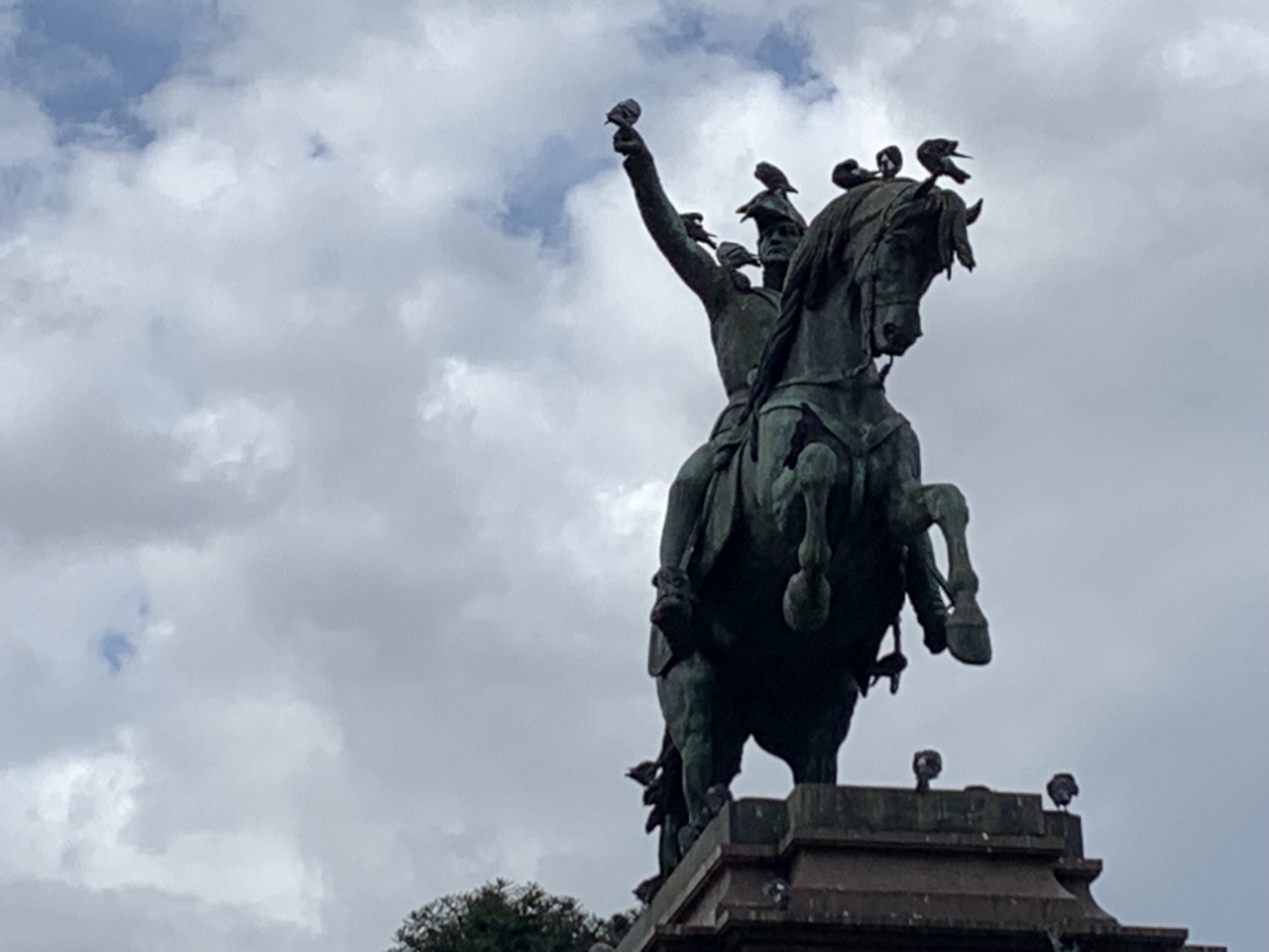 サン・ニコラス地区の宿から徒歩圏、レティーロ地区のサン・マルティン将軍広場に立派な将軍像が鎮座しています。南米でも指折りの緑豊かな美しい広場で、将軍の周囲もゆったり散策する地元の人の姿が。ピースフルです。肝心の南米解放の偉人、サン・マルティン将軍はいつ見ても大勢の鳥に群がられ、大人気の様子でした。