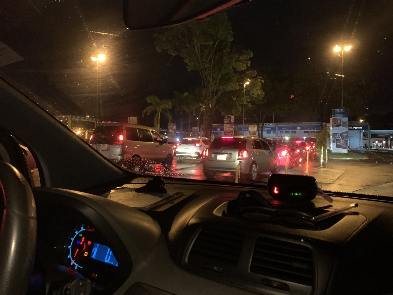 イグアスの滝を訪ねる前夜、宿はアルゼンチン側のプエルトイグアスにとっていましたが、バスで国境をこえ、ブラジル側のフォスドイグアスの街へ夕飯を食べに出かけてみました。割と早い時間にバスがなくなる事は分かっていたので、バスターミナルと同じ敷地にあるタクシー乗り場とオフィスも確認済だったのに、大雨になったせいか夕飯後には街から一斉にタクシーが姿を消して顔面蒼白。Uberなどタクシーアプリを起動しても全く捕まらず、最終的には近くのホテルのフロントで電話してもらい、何とか一台確保できました。英語の通じない大ベテランドライバーでしたが乗車前に運賃の交渉を済ませ、無事宿に。当然ながら日本とはタクシー事情が全く違いました。