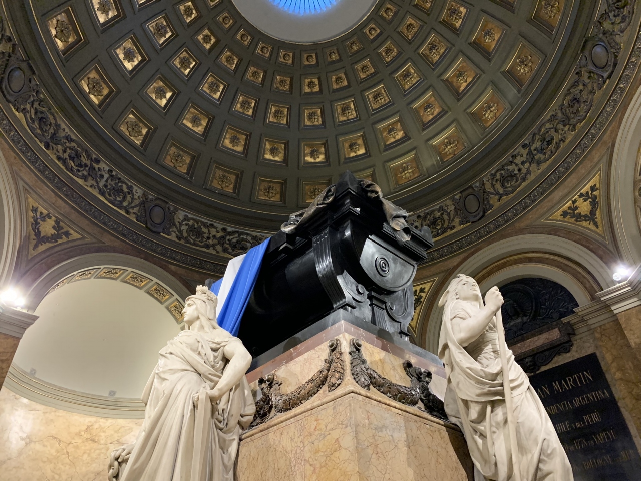 大木のような柱が連なる外観は、もはや大聖堂というより神殿の趣きです。入場料は不要で誰でも自由に出入り可能。観光エリアにあって、思いのほか広い堂内には絶え間なく誰かが訪れますが不思議と静かです。とりわけ、アルゼンチン独立の英雄、サンマルティン将軍の棺がまつられた一角は神聖な空気が漂っていました。