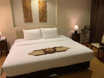 スワンナプームに深夜着で、次便が翌朝だったので空港から車で10分程度のこちらへただ寝るためだけに。以前泊まった同クラスの「寝るだけ」用ホテルはライブハウスと隣り合わせであまりの騒音に耳栓必須でしたが、こちらは離着陸する飛行機の気配は感じるものの概ね静かでした。売りの一つはその飛行機を近くに拝める屋上のバーだったはずが、泊まった日は小雨が降っていたせいか、チェックイン時には既にクローズ。手頃な値段で、部屋も清潔。特に問題なし。徒歩圏にコンビニが二軒あります。