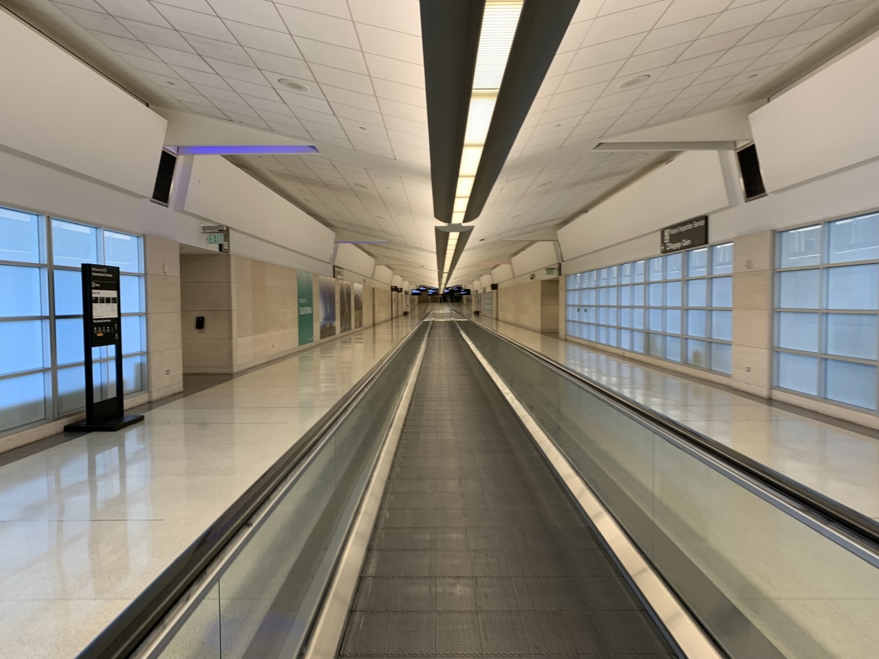 旅の最終目的地が南米など第三国であっても、アメリカで乗り継ぐなら誰しもいったん入国手続きが必要です。今回、日本からの最初の経由地がサンフランシスコだったので入国して一度荷物もピックアップ。その後は乗り継ぎ用ルートの分岐点にも大きく看板が出ているので迷いません。自分は次も同じユナイテッド航空だったのですかさず荷物を預けて、次は国内線のゲートまで延々移動です。逆ルートも同様に結構な道のりで、空港というよりはもはや街。時間にどうぞ余裕を。