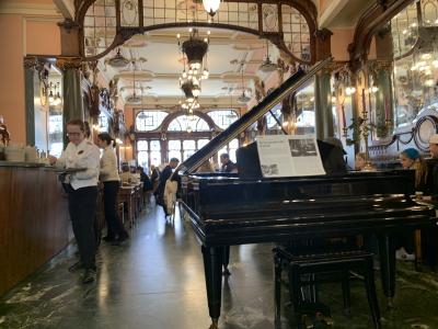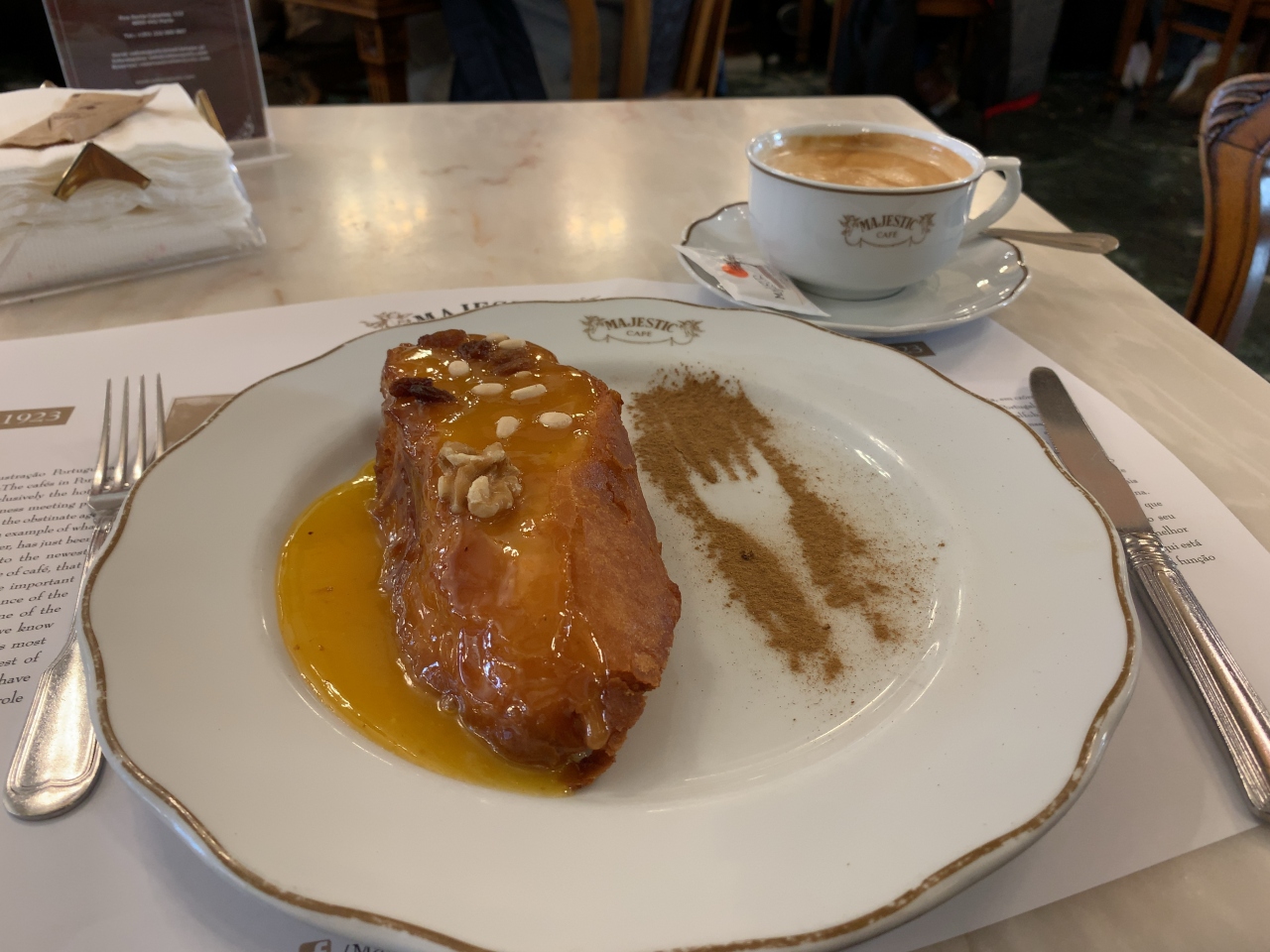 街一番の老舗カフェは営業時間中ずっと大人気。朝から晩まで大賑わいのサンタ・カタリーナ通りに面していて、四六時中長蛇の列が出来ているのですぐ見つかります。かつて「世界で6番目に美しい」と謙虚な位置づけに選ばれています。偶然すいた時間に、そっと中を覗き込むと上品な店員さんが笑顔で扉を開け迎え入れてくれました。満席の店内には大騒ぎの観光客もいるのに不思議と穏やか。ベテランスタッフのしなやかな動き、看板メニューの一つのボリュームたっぷりフレンチトースト、程よく豪華な内装、いずれも印象的な場所でした。