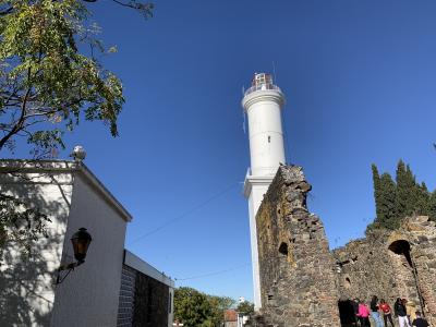 コロニア港に着いてあてずっぽうに旧市街を目指しても、その内この灯台が見えてきます。世界遺産にもなっている旧市街は全般に低い建物が軒を連ねる中、青空にひときわ映える真っ白な灯台は一番のランドマーク。入場料を支払えばてっぺんまでのぼれます。