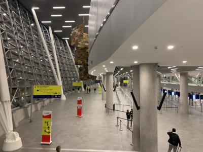 メンドーサ(アルゼンチン)からの到着時と、ヒューストンへの移動時に国際線を利用しました。天井がやたら高いエリアが多く、開放的な雰囲気です。チリの本土にいると忘れがちですが、遥か離れたイースター島の有名人モアイ像のレプリカがあちらこちらに鎮座しています。
