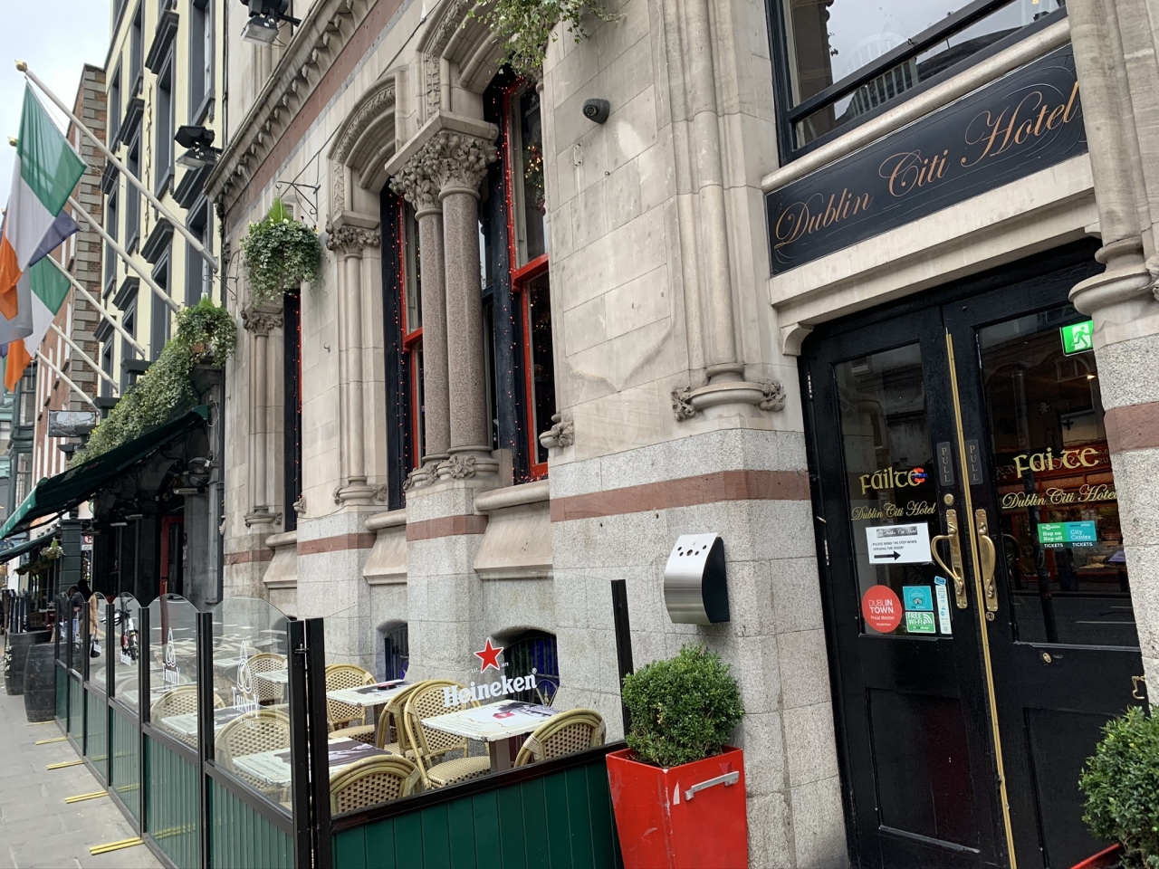 初ダブリンだったので、空港からのアクセスと市内観光の利便性を考えて、一番にぎやかなテンプルバー界隈のこちらを選びました。トリニティカレッジを始め、主だった都心のスポットは概ね徒歩圏です。事前に各サイトで予習していた通り、夜間の騒音の凄まじさは面白い位で、客室に予め耳栓が常備されているのも頷けます。夜更けまで大騒ぎの階下のパブだけでなく、同じフロアの客室からも会話や音楽が筒抜けでした。ツッコミどころは満載のレトロな宿ながら、この立地にしてはまだ良心的な値段で泊まれるのは魅力です。