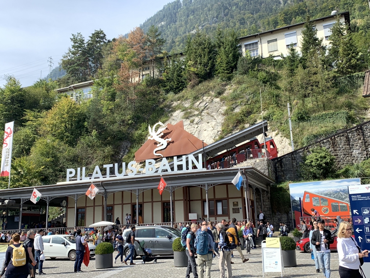 ルツェルンで人気のピラトゥス山観光で誰もが必ず通る場所です。自分はルツェルン駅でピラトゥス山を一巡りできるシルバーラウンドトリップのチケットを購入してから山に登ったので、山頂から一気に麓のアルプナハシュタット駅までは登山鉄道で下りました。駅および周辺には目ぼしい見どころはありません。通りを渡って湖側から見上げれば、駅舎越しにせっせと斜めに上り下りするレトロな登山列車を写真に収める事ができます。